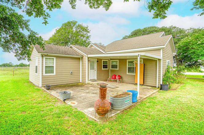 Are you looking to escape the big city hustle with your horses and cattle? Look no further! This property is strategically positioned with convenient access to all of your needed big city amenities from Katy, Victoria, Austin to San Antonio.This cozy 3 bedroom, 2 bath farmhouse features a spacious open concept kitchen, dining, and living area ideal for hosting gatherings. Step outside to a 20X22 partially covered patio, perfect for enjoying those panoramic sun rises. Check out the 40X60 barn with tack room, 2 horse stalls which can be easily expanded by 6 stalls. Adjacent to the barn you will find a set of cattle working pens with load out chute and dog kennel.The property Includes a 30X40 dual purpose building featuring a work area with ample space for vehicle parking, in addition to a 14X18 guest quarters. The guest quarters feature a partially plumbed (pending water/sewer connection) bathroom, toilet, and shower installed. Seller's will retain Mineral Rights.